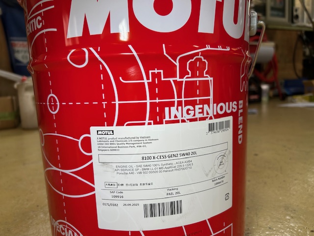 エンジンオイルはMOTUL 8100 X-CESS GEN2 (5W-40) LL01で対応させて頂きました