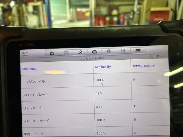 エンジンオイルのサービスリセットと他のインターバルも期限過ぎておりますので一緒にリセットさせて頂きました