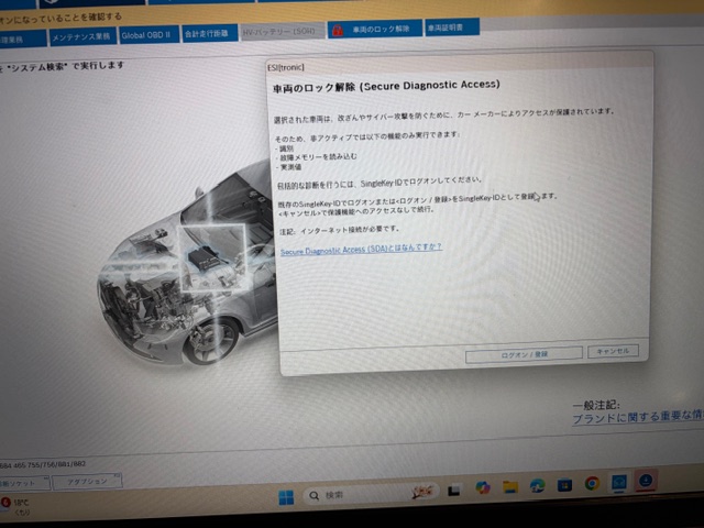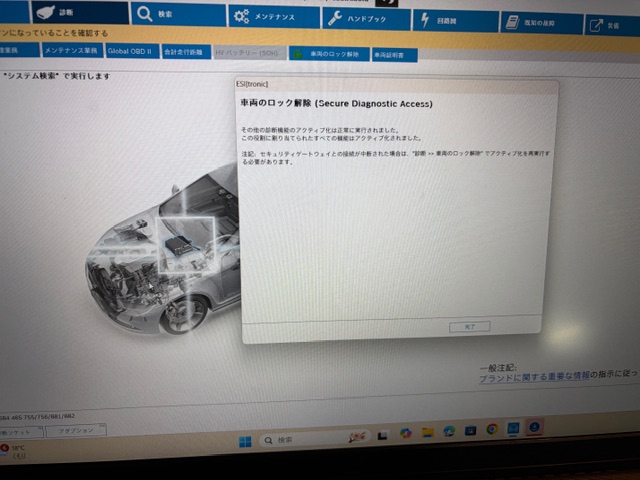 セキュリティロック解除しまして故障コード点検・消去