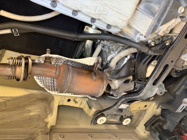 途中触媒支えるステーのボルト穴が合わないのでボルト穴加工させて頂きました