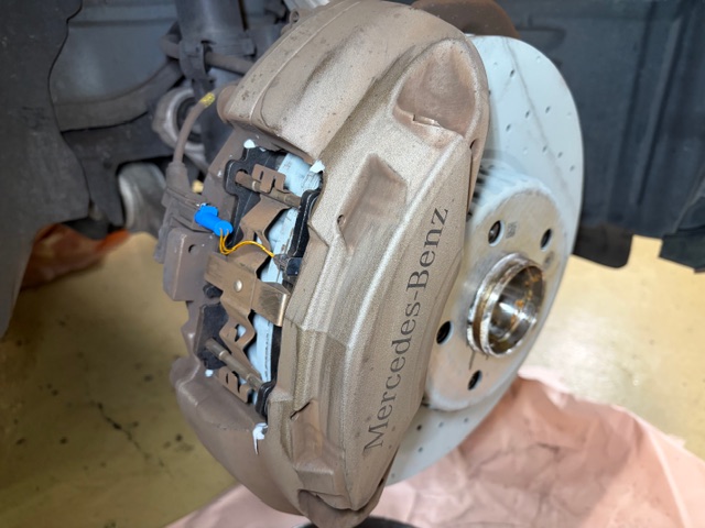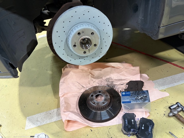 フロントブレーキパッド残量少ないですので低ダストブレーキパッドとディスクローターSET交換させて頂きました