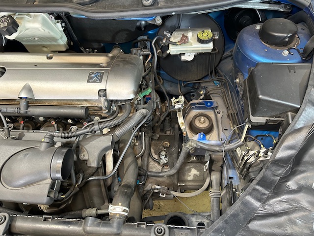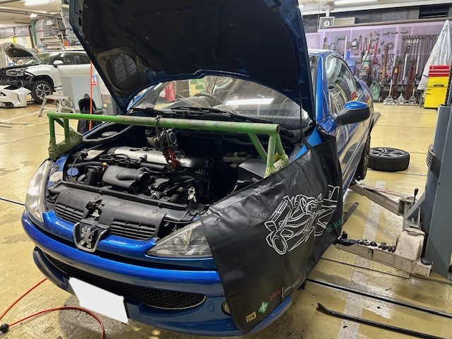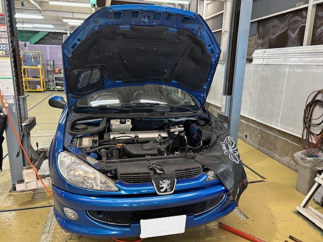 Peugeot 206CC S16 プジョー206CC エンジン掛けると異音 レリーズベアリング異音 クラッチ交換 冷却水漏れ ヒーターパイプ交換