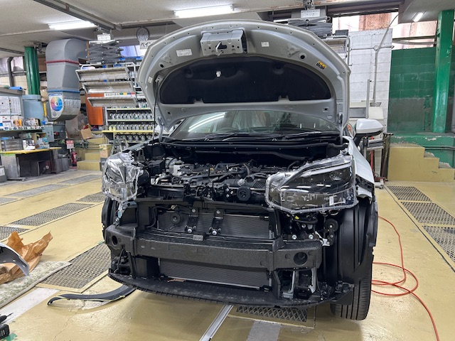 TOYOTA YARIS CROSS トヨタ ヤリスクロス フロントバンパー交換 ミリ波レーダー エーミング作業 前方レーダー光軸調整