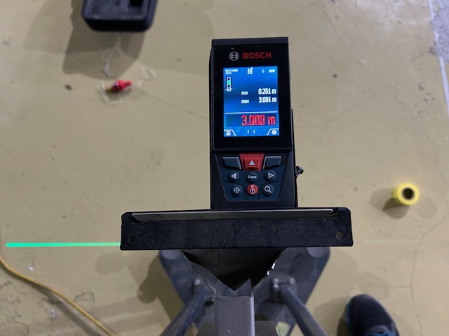 修理書のデータを確認し弊社床面レベルと照合しながら三角錐ターゲット設置します