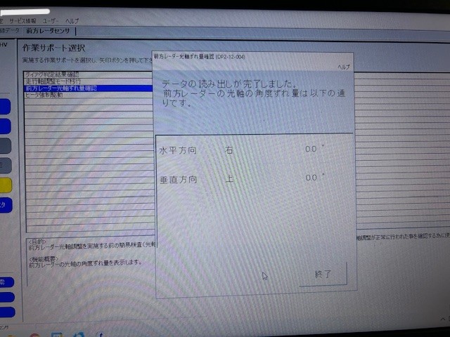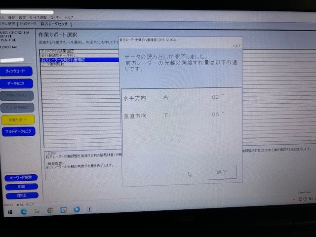 故障コード消去と試運転でのACCなどの作動確認
