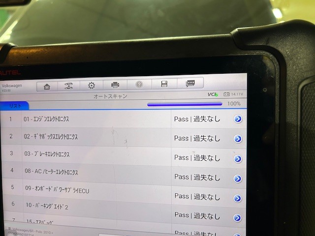 最終テスターにて故障コードの入力が無い事を確認しまして作業完了です