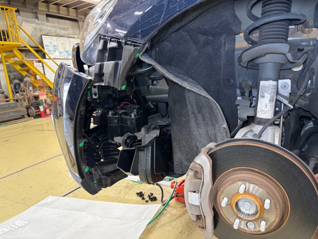 サブバッテリーはフロントバンパー内左側にございますのでバンパー少しずらします
