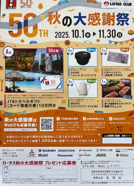 専用の応募用紙にご記入、又はWEBでお申し込み頂くと、ご応募いただいたお客様の中から抽選で