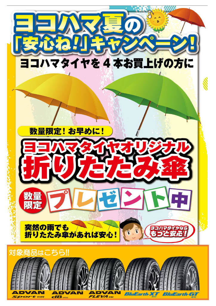 ヨコハマタイヤオリジナル「折りたたみ傘」プレゼント中!